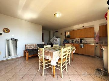 La zona giorno è composta da un ampio e luminoso soggiorno, ideale per godere della luce naturale per gran parte della giornata. Adiacente al soggiorno si trova un pratico cucinotto, con accesso ad un giardino/terrazzo con vista panoramica.