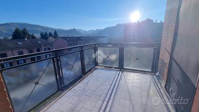 In una tranquilla zona residenziale immersa nel verde, luminoso appartamento trilocale situato al terzo ed ultimo piano di una palazzina con vista panoramica sul paesaggio circostante.
