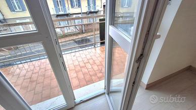 Proseguendo, la zona notte, ben separata, ospita due camere da letto, una matrimoniale e una singola, entrambe di generose dimensioni e con accesso diretto al balcone principale dell'abitazione. Completa il piano un bagno finestrato, arredato con vasca.