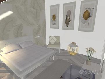 L'ipotesi progettuale prevede un ingresso su un luminoso soggiorno living con cucina a vista di circa 31 mq, concepito come ambiente centrale della casa, accogliente e ben distribuito, con la possibilità di realizzare un terrazzino che regala una suggestiva vista panoramica e un piacevole sfogo esterno.