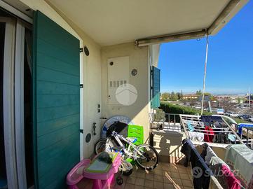 GATTEO: Appartamento trilocale posto vicino ai servizi, con due camere da letto, due bagni, due balconi, e garage di proprietà.