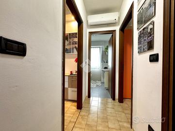 GATTEO Appartamento trilocale, con ampia zona giorno, garage e cantina. La soluzione si sviluppa su un unico livello al piano secondo, entrando veniamo accolti dal luminoso soggiorno dalle comode metrature, da qui accediamo alla cucina abitabile con affaccio sul balcone. Tramite il disimpegno accediamo alla zona notte, dove abbiamo una camera matrimoniale, una camera singola, un bagno con box doccia ed un comodo ripostiglio con attacchi per ricavare un secondo bagno. Recentemente sono stati rifatti gli infissi e il bagno. Impianto di aria condizionata e caldaia nuovi. Completano la soluzione il garage e la cantina al piano terra. La palazzina è circondata dal giardino condominiale e si trova in un tranquillo quartiere residenziale in via chiusa. Per maggiori informazioni contattaci allo o al