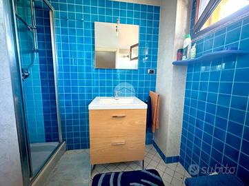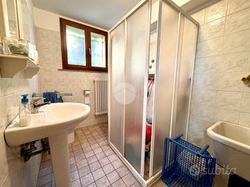 Entrando all'interno della soluzione troviamo l'ingresso interno al garage in cui è presente anche un bagno con doccia.