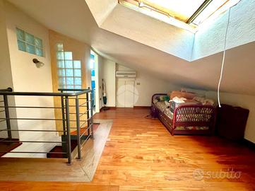 La zona notte si compone di tre locali, tra cui due camere da letto spaziose e una mansarda versatile con un bagno con doccia, perfetta per essere adibita a studio o a una terza camera.