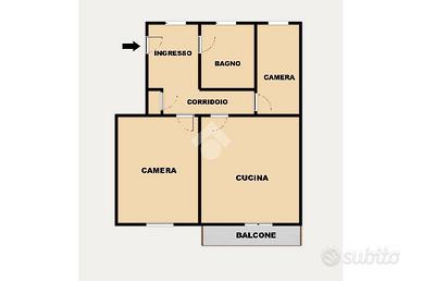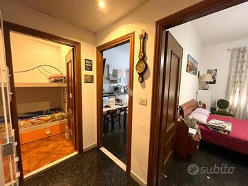 L'immobile è composto da un ingresso arredabile, dalla cucina con sfogo con portafinestra sul balcone, da due camere da letto, di cui una matrimoniale di generosa metratura e l'altra singola, e dal bagno, dotato di box doccia e finestra.
