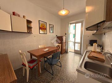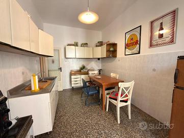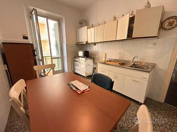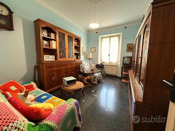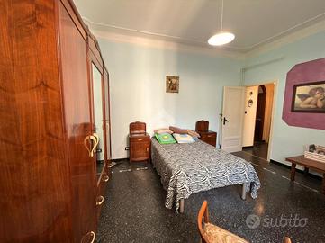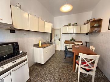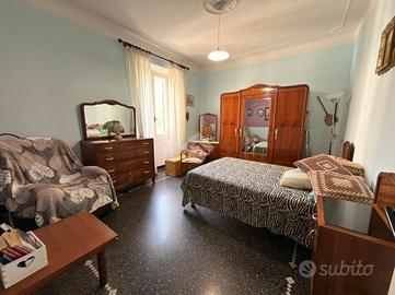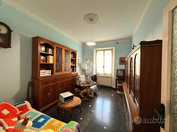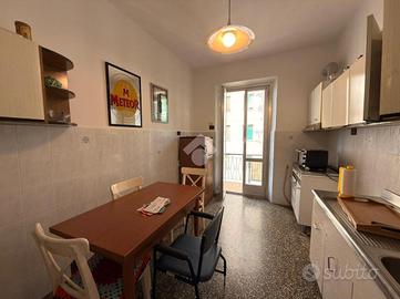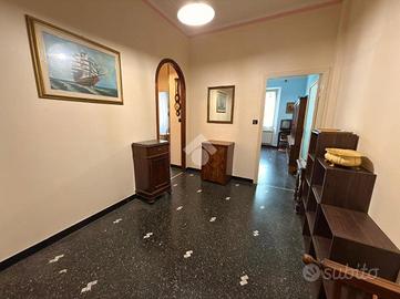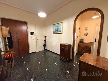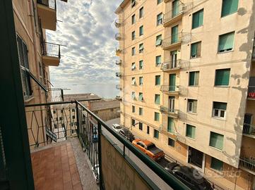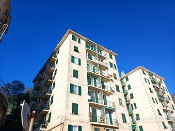 Voltri. Via Enrico Morselli. Proponiamo ampio appartamento di cinque vani composto da ingresso, cucina abitabile con balcone esposto ad ovest, soggiorno, camera matrimoniale grande, bagno e piccola dispensa. Piano alto con ascensore. Doppia esposizione. Termoautonomo. Vista mare dal lato di ponente. Possibilità di acquisto di un box auto di mq 10 dotato di serranda motorizzata (Euro 37.000).