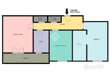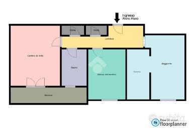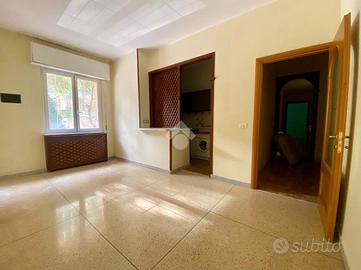Cucina con tinello, camera singola, bagno finestrato con vasca, camera matrimoniale e due utili dispense.
