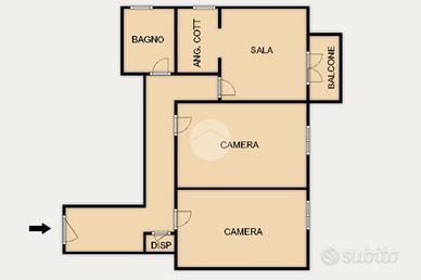 L'appartamento, di 70 mq, è composto da uno spazioso ingresso con dispensa, sala con angolo cottura e uscita sul balcone, due camere da letto e bagno.