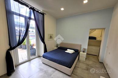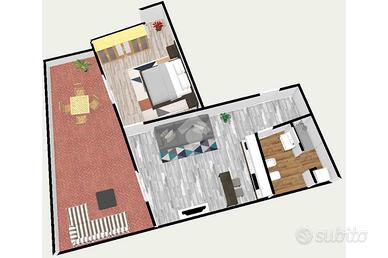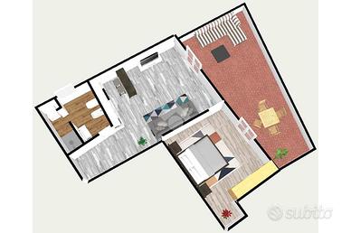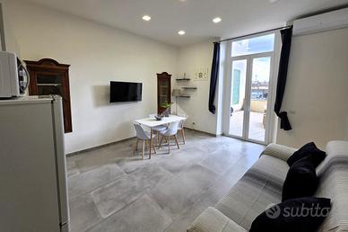 L'appartamento si apre su un ampio open space che unisce soggiorno e cucina, creando un ambiente accogliente e funzionale.