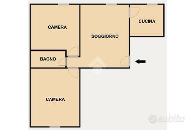 Ci accoglie l'ingresso in soggiorno il quale ci accompagna all'angolo cottura e alla zona notte composta da due camere da letto.