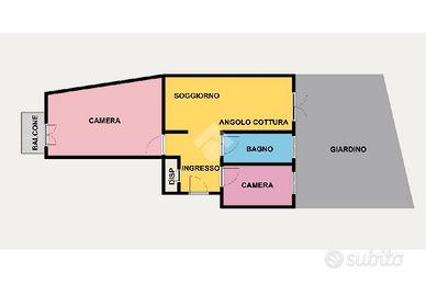 L'appartameno dispone di ingresso,dispensa, due camere di cui una con uscita sul balcone, bagno, zona giorno open space con uscita sul giardino terrazzato.