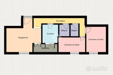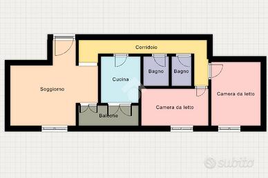 Proponiamo in vendita appartamento con due camere da letto, due bagni e balcone.