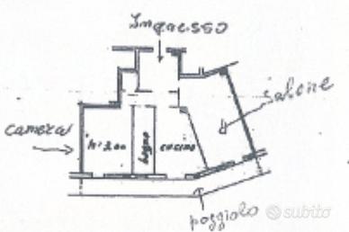 L' immobile è composto da: ingresso, cucina abitabile, due camere, bagno e dispensa.