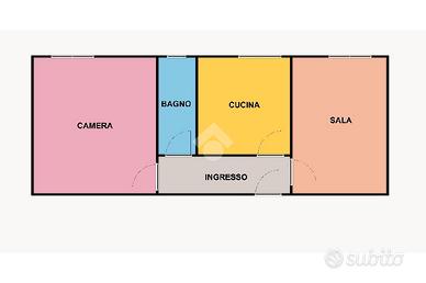 L'immobile è composto da : ingresso, cucina abitabile, due camere da letto e un bagno con doccia; il riscaldamento è centralizzato.
