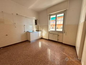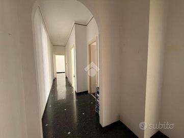 Voltri. Via Ventimiglia. Zona Chiesa degli Angeli. Proponiamo, al quarto piano con ascensore, appartamento di cinque vani composto da ingresso in corridoio, cucina abitabile, dispensa, camera matrimoniale grande, ulteriore camera da letto e bagno con finestra. Balconata. Riscaldamento centralizzato. Esposizione a levante. Luminoso e soleggiato. A duecento metri dalla stazione, in zona ottimamente servita dai negozi.