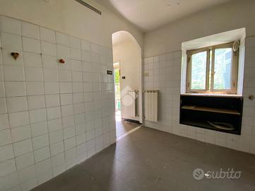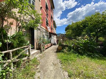 Attraversando il vialetto privato giungiamo al primo piano dell'appartamento composto da ingresso adattabile a soggiorno, cucina vivibile e bagno finestrato con box doccia. Tramite scala interna si sale al piano superiore composto da tre camere, che si possono prestare come camera matrimoniale, camera singola o studiolo e sala. La proprietà è circondata da aree verdi e ha un giardino situato a pochi minuti dall'abitazione e raggiungibile pedonalmente attraverso un sentiero. Il riscaldamento è TERMOAUTONOMO collegato ai caloriferi a gas metano. Le finestre sono alluminio e le persiane in alluminio, Non vi sono spese di amministrazione.