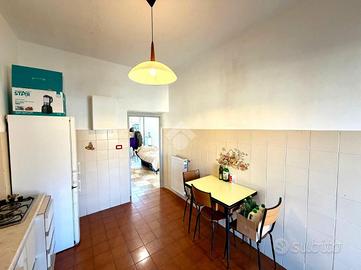 Ci accoglie l'ingresso in soggiorno il quale ci accompagna alla cucina, dotata di porta finestra con sfogo sul balcone, e alla zona notte composta da due camere da letto.