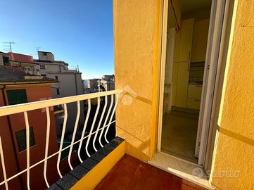 ingresso, ampio soggiorno con splendida vista mare e prima balconata ad angolo, cucina abitabile con secondo balcone, camera da letto matrimoniale, camera singola, bagno con vasca, comodo armadio a muro all'ingresso e per concludere una cantina di circa tre metri quadrati.
