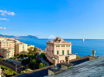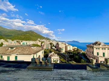 Quarto dei Mille, Via Nicola Fabrizi, proponiamo una mansarda con splendida vista mare sul promontorio di Portofino di 100mq così attualmente composta;