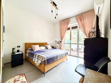 TECNOCASA STUDIO QUARTO Quarto dei Mille, nel tratto più servito di Viale Pio VII, adiacente a Via Rossetti, proponiamo appartamento finemente ristrutturato di 5 vani per 86 mq con giardino privato e ampia balconata vivibile, attualmente così composto; la zona giorno è costituita dall'ingresso, aperto sull'ampio soggiorno, servito da una spaziosa balconata esposta ad Ovest, dalla cucina abitabile dalla quale è possibile accedere al giardino privato esposto ad Est, sfruttabile per pranzi, cene e per godersi un pò di relax in famiglia. La zona notte invece, separata da quella giorno da un disimpegno, è costituita da due camere da letto, di cui la matrimoniale completa di cabina armadio, oltre a un elegante bagno finestrato dotato di un moderno e comodo box doccia. L'appartamento è stato ristrutturato integralmente tre anni fa, l'impianto elettrico è nuovo e sflilabile, anche l'impianto idraulico è stato completamente rifatto, la porta è blindata, gli infissi interni sono in PVC e sono dotati di doppio vetro con camera d'aria che garantisce un ottimo isolamento termico ed acustico, il pavimento è un comodissimo e moderno gres porcellanato. L'immobile inoltre è dotato di un impianto di aria condizionata che serve la camera da letto matrimoniale e la sala. L'ottima esposizione garantisce luminosità durante tutte le ore del giorno, oltre che ad una silenziosa vista aperta sul verde. Esposizione: EST, OVEST. Ci troviamo nel quartiere signorile di Quarto, letteralmente a cinque minuti a piedi dal mare, comodissimo a servizi ed attività commerciali, dalla stazione ferroviaria di Genova Quarto dei Mille, dall'uscita autostradale di Genova Nervi e dall'Ospedale Gaslini, in un contesto condominiale in ottimo stato manutentivo, recentemente restaurato. Il riscaldamento è centralizzato. VORRESTI VISITARLA? CHIAMACI SUBITO ALLO O SCRIVICI AL DEVI VENDERE, AFFITTARE O CAMBIARE CASA E VUOI SCOPRIRNE IL VALORE ATTUALE DI MERCATO? CONTATTACI PER UNA CO