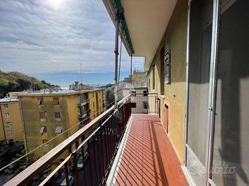 Via Pasquale Berghini: DUE CAMERE - DUE BALCONI - VISTA APERTA - ULTIMO PIANO - ASCENSORE Proponiamo in vendita nuova soluzione immobiliare in un contesto tranquillo e silenzioso, ma allo stesso tempo comodo a mezzi e servizi. L'immobile è sito all'ultimo piano di un palazzo in buono stato, dotato di ascensore. La Zona giorno è composta da un ingresso alla Genovese con la possibilità di creare una zona openspace con la cucina abitabile dalla quale si ha l'accesso alla PRIMA BALCONATA con una buona VISTA APERTA e scorcio mare. La Zona notte comprende DUE CAMERE DA LETTO di cui una con accesso al SECONDO BALCONE, un comodo ripostiglio ed infine il bagno finestrato con soppalco. conclude la proprietà un un'utilissima cantina di 6mq. Il riscaldamento è centralizzato e le spese sono contenute.