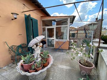 Completa la proprietà uno splendido terrazzo di 70mq, ideale per pranzi all'aperto, relax o per creare una zona verde privata. Dispone una serra, versatile e luminosa, utilizzabile come ambiente di lavoro, giardinaggio o deposito.