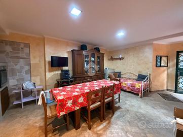 L'immobile al piano terra è composto da zona giorno con angolo cottura, camera da letto, cameretta, disimpegno e bagno finestrato con doccia; Al piano Seminterrato, ampia Sala Hobby con cucina a vista in muratura e bagno con doccia. Completano la proprietà un bel Garage di 20 mq con serranda elettrica ed un giardino di circa 200 mq che gira su tre angoli della casa, in parte pavimentato.