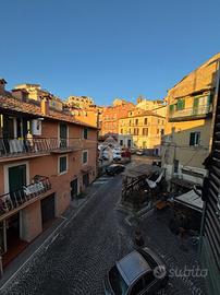 L'abitazione si apre su un bel soggiorno, cucinotto, due camere da letto matrimoniali, disimpegno e bagno con vasca. La zona giorno è dotata di un balcone dal quale si può ammirare la bellezza di tutto il centro storico e una strepitosa vista mare.