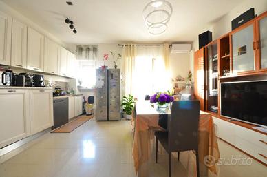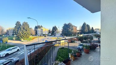 La soluzione è composta da un luminoso soggiorno con cucina a vista da cui si può accedere al comodo balcone, ampio disimpegno che conduce al bagno finestrato con box doccia e alle due camere matrimoniali di cui una con accesso al balcone privato.