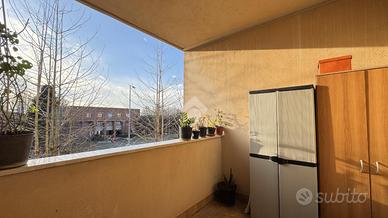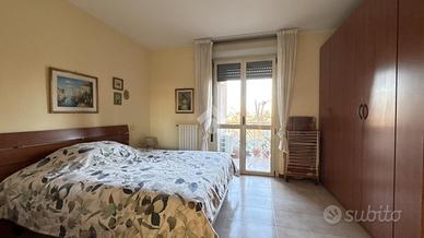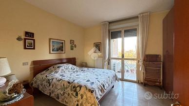 La zona notte comprende due camere da letto, entrambe con accesso ai balconi, e due bagni, entrambi finestrati garantendo comfort e privacy. L'appartamento è dotato di aria condizionata, riscaldamento autonomo ed