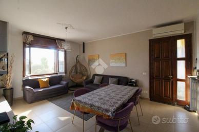 COSA SAPERE SULLA CASA: SOGGIORNO - CUCINA - 2 CAMERE - 1 BAGNO - BOX. PARTICOLARITA' E DESCRIZIONE: In contesto di 3 unità disponiamo di ampio appartamento trilocale con ingresso indipendente. L'immobile è composto da soggiorno luminoso, cucina abitabile separata, ampi disimpegno, 2 camere da letto matrimoniali e spazioso bagno con doccia. Box di proprietà.