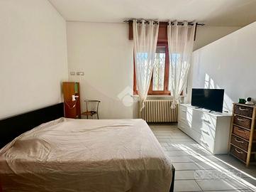 GHISALBA: In zona residenziale tranquilla e vicina a tutti i servizi principali del paese e ad un grande parco pubblico proponiamo in vendita appartamento trilocale di ampie metrature senza spese condominiali. L'immobile è ubicato in un contesto di sole due unità abitative e vanta utente totalmente autonome e grande luminosità (libera su quattro lati). Una scala a servizio di entrambe le unità ci accompagna all'ingresso della casa al piano primo sviluppata su unico livello che misura circa 117 mq. Un disimpegno gestisce le varie zone. La zona giorno open space è composta da ampia cucina abitabile e soggiorno con balcone esposto a sud. Bagno con vasca e piccolo ripostiglio lavanderia. Nella zona notte troviamo due grandi camere da letto matrimoniali dove le metrature permettono di creare cabine armadio e/o bagni esclusivi in camera. Completa la zona un bagno padronale con vasca e attacco lavatrice/asciugatrice. Riscaldamento a radiatori con caldaia recente, predisposizione impianto di condizionamento, impianto elettrico recente. Completa la proprietà l'area esclusiva adibita a giardino privato di circa 640 mq.