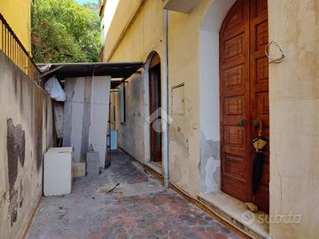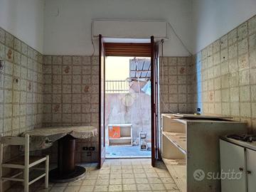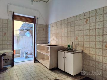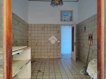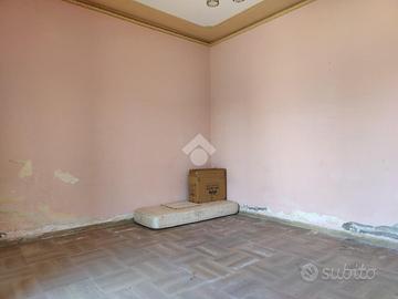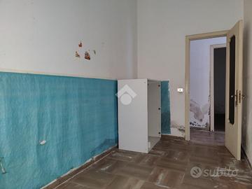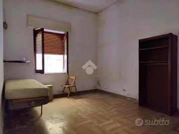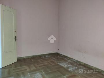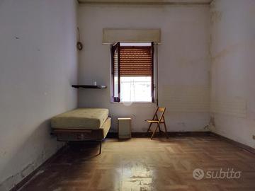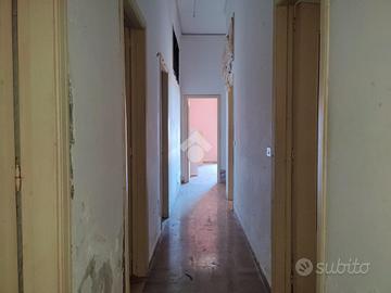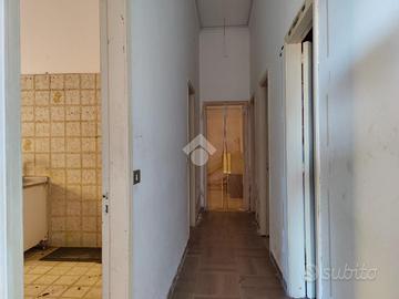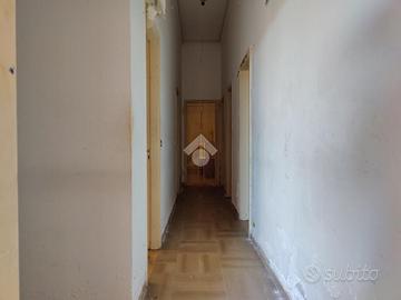 L'immobile proposto in vendita è ubicato al piano terra di una palazzina di quattro piani, edificata negli anni '70 e con un prospetto esterno in discreto stato. L'appartamento ha un'esposizione angolare rivolta a sud-est, misura internamente 105 mq netti calpestabili, l'ingresso è indipendente e non fa parte del condominio, è possibile accedere sia dal balconcino lato strada direttamente in soggiorno, oppure dal cortile laterale di proprietà; l'ingresso principale si apre su corridoio, a seguire un ampio e luminoso soggiorno di 26 mq, una cucina abitabile con uscita su corte, una camera matrimoniale finestrata, una cameretta finestrata e una seconda cameretta/studio senza aperture, infine un ripostiglio/lavanderia e un servizio con doccia finestrato. Le condizioni sia interne che esterne sono da ristrutturare, gli impianti idrico ed elettrico allo stato originario dell'epoca, pavimento in marmo originario e infissi in legno monovetro con avvolgibili, ad eccezione dell'unico esterno in alluminio presente in soggiorno. L'ampia metratura dell'immobile permette una buona ridistribuzione degli spazi, con la possibilità di adibirlo anche a studio professionale, la corte carrabile può rappresentare possibilità di parcheggio con una larghezza di 2,06 cm e una profondità di 18,00 mt.