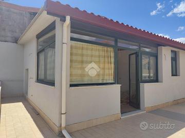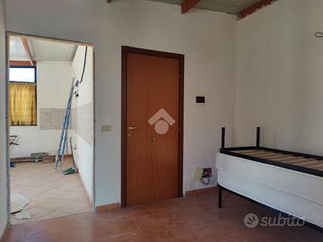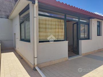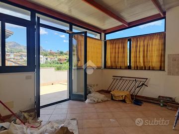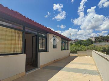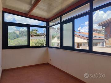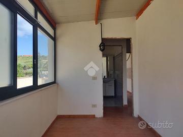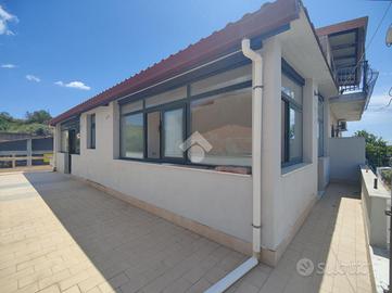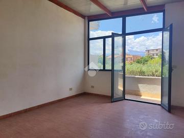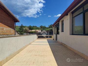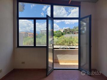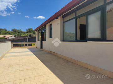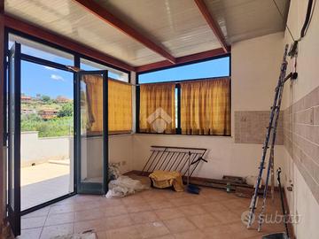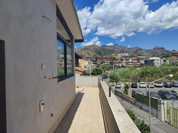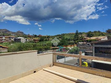 L'immobile proposto in vendita è ubicato al secondo ed ultimo piano di una palazzina di sole tre unità abitative con prospetto esterno ristrutturato di recente, non è presente un condominio e non ci sono spese condominiali. L'appartamento è stato realizzato di recente, a completamento di uno stabile edificato nel 1984. Internamente misura 55 mq calpestabili, da un ampio disimpegno d'ingresso si accede a destra nella zona soggiorno/cucina, con uscita su un ampio terrazzo a giro di 53 mq panoramico, a seguire una camera da letto con uscita sul lato balconato del terrazzo rivolto ad ovest con vista Etna, una luminosa cameretta interamente finestrata con esposizione angolare, un servizio con doccia finestrato, e infine la predisposizione per una lavanderia è stata realizzata sul terrazzo lato est. L'appartamento si presenta in condizioni interne da rifinire ed ultimare, il tetto è in termocopertura, già presenti infissi in alluminio con vetrocamera e finestre scorrevoli, pavimento in ceramica di tipo cotto, gli impianti idrico ed elettrico di recente realizzo.