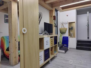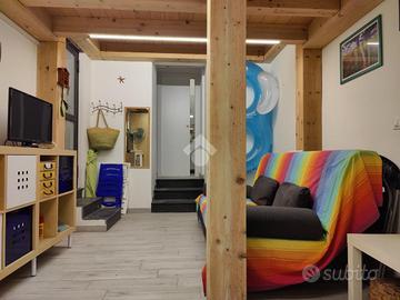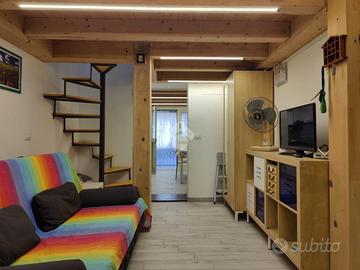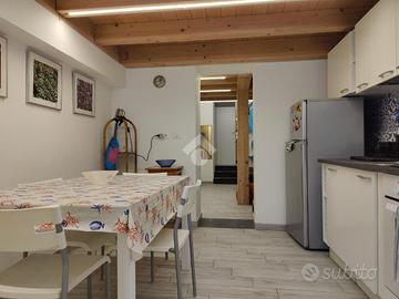L'immobile oggetto di vendita è posto al piano terra, facendo parte di un piccolo condominio; l'ingresso è sia condominiale che indipendente, si accede nella zona soggiorno, a destra la cucina abitabile con uscita su una piccola corte attrezzata con angolo lavanderia, a seguire il servizio con doccia finestrato, e dal soggiorno tramite scala interna si accede al piano soppalco, dove troviamo due camere da letto e il secondo servizio. L'immobile è stato totalmente ristrutturato e curato nei dettagli, è ideale per chi cerca una soluzione già pronta da mettere a reddito in quanto prevede minimo otto posti letto, o per chi cerca un punto di appoggio per le vacanze. Ad un prezzo aggiuntivo di €4.000 è possibile acquistare l'intero arredamento presente nell'immobile.