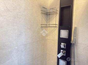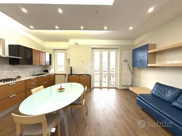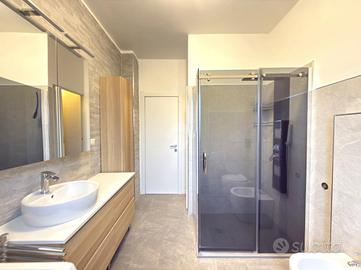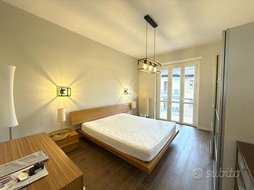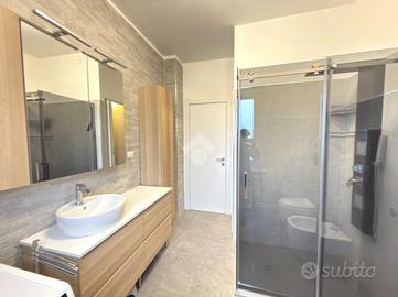 L'appartamento è composto dall'ingresso living in soggiorno con cucina a vista e balcone, il ripostiglio, il bagno finestrato con doccia, due ampie camere da letto matrimoniali entrambe con balcone privato.