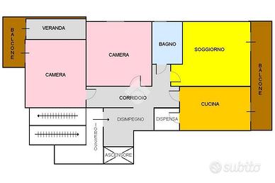 Entrando troviamo l'ampio ingresso che ci conduce alle camere dell'appartamento. La soluzione è composta da un'accogliente salone separato dalla cucina, entrambi con affaccio su balcone. La zona notte è composta da due camere matrimoniali una con finestra e una con balcone. Conclude la soluzione un bagno con vasca e finestra.