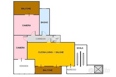 * Cucina abitabile con ulteriore uscita sul balcone (originariamente la cucina era una cameretta, con possibilità di ripristino),