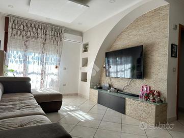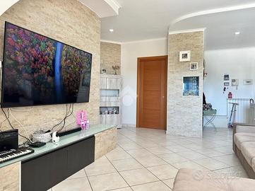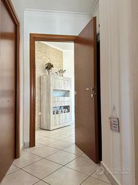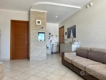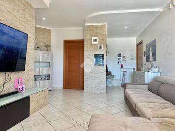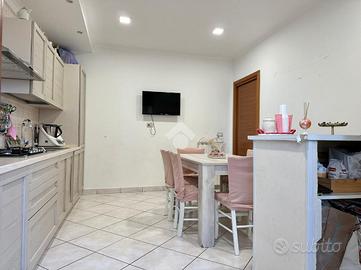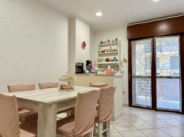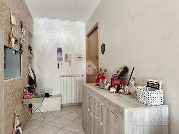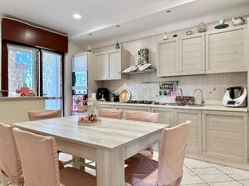 L'immobile si apre su un ampio salone d'ingresso, proseguendo con una cucina abitabile servita da un balcone verandato con comodo ripostiglio adibito a lavanderia.