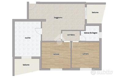 La zona notte, ben separata dalla zona giorno, è composta da due camere da letto e un bagno finestrato con box doccia.