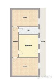 L'immobile si trova al primo piano alto senza ascensore ed è composto da un luminoso salone living, due ampie camere da letto e un bagno con vasca. Gli ambienti sono ben distribuiti e l'appartamento si presenta in buone condizioni