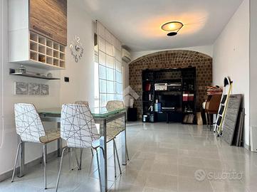 * Salone e cucina living con doppio affaccio su balcone