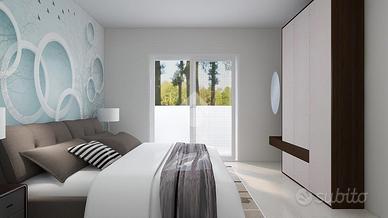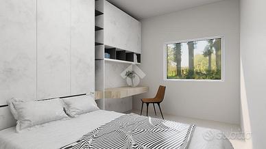 La zona notte include due camere da letto, di cui una matrimoniale con accesso a un balcone privato. Sono presenti due bagni, entrambi dotati di doccia; uno con finestra per una maggiore areazione naturale e l'altro con accesso a un balcone. Completano la proprietà un ampio ripostiglio, soluzione ideale per ogni esigenza di spazio.