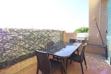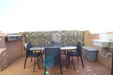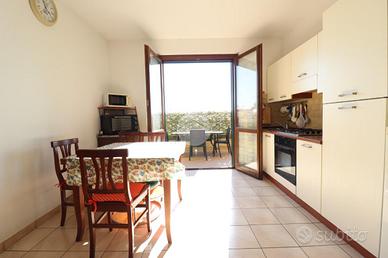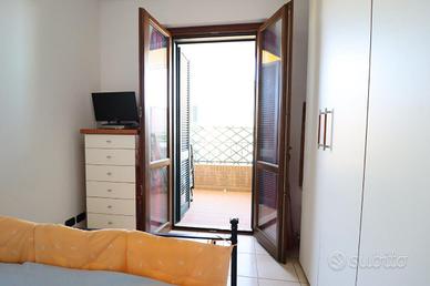 L'ingresso si apre su un ampio open space con cucina e soggiorno, un ambiente accogliente con accesso diretto al balcone abitabile, ideale per pranzi all'aperto o momenti di relax. Un disimpegno conduce alla zona notte, composta da due camere, una matrimoniale con accesso su un ulteriore terrazzo esposizione SUD-EST con vista mare, l'altra doppia con balconcino privato esposizione est. Bagno finestrato con vasca completo di accessori, e un piccolo locale ripostiglio adibito a lavanderia, con lavandino e doccia.