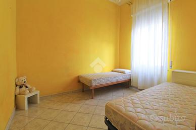 L'ingresso conduce alla cucina abitabile che rimane ben separata dal soggiorno. La zona notte comprende due camere da letto di cui una matrimoniale e una doppia.