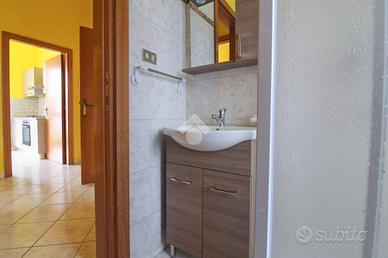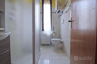 Il bagno è finestrato e dotato di una pratica doccia. Un ulteriore vantaggio di questa proprietà è la presenza del balcone nella zona giorno, che si affaccia su Giulianova Paese.