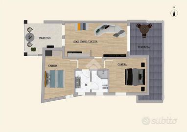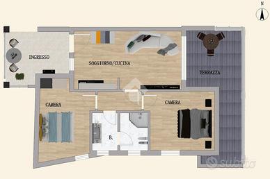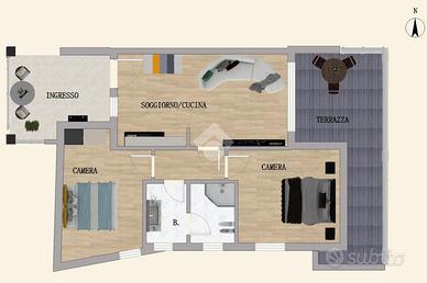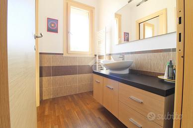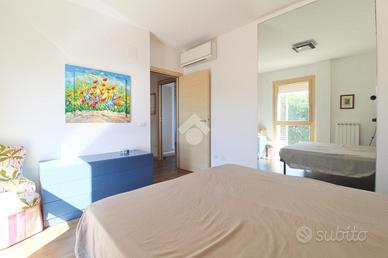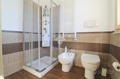 La zona notte è composta da due camere da letto: una spaziosa matrimoniale e una camera doppia, entrambe accoglienti e ben illuminate. Il bagno, finestrato, è dotato di antibagno e una moderna doccia multifunzione, offrendo comfort e funzionalità.