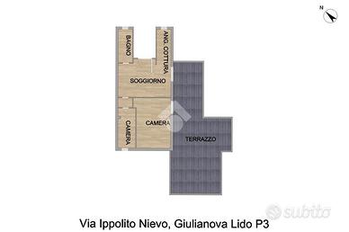 Situato al terzo piano di uno stabile in via Nievo a Giulianova Lido. Questa proprietà offre un'opportunità unica per chi cerca una casa accogliente e luminosa in una posizione privilegiata. L'appartamento accoglie con un ingresso che si apre su un luminoso soggiorno. Questo spazio è perfetto per rilassarsi e intrattenere gli ospiti. L'angolo cottura, leggermente separato e non a vista, consente di cucinare comodamente senza interrompere la continuità estetica dell'ambiente. Dalla zona giorno si accede a un terrazzo esterno di dimensioni generose, in parte coperto da una tettoia in legno. Questo spazio all'aperto offre una vista mozzafiato sulla collina e sulla Cupola del Duomo di San Flaviano, ideale per momenti di relax al tramonto o per cene all'aperto con amici e famiglia. La zona notte comprende una camera matrimoniale e una cameretta. Il bagno finestrato è dotato di un box doccia moderno, garantendo praticità e stile. L'appartamento ha beneficiato di una ristrutturazione interna nel 2019, che ha aggiornato gli spazi con finiture moderne e nuovi impianti sia elettrici che idrici. Inoltre, lo stabile è stato rinnovato nel 2025, assicurando non solo un'estetica aggiornata ma anche un miglioramento dell'efficienza energetica complessiva. A completare questa proprietà, troviamo un piccolo box auto situato al piano seminterrato dello stabile. Per ulteriori informazioni o per fissare un appuntamento, contattaci. Approfitta anche del nostro servizio Kiron se hai bisogno di un mutuo, un finanziamento o una surroga. Inoltre non perdere l'occasione di ricevere una consulenza personalizzata e una valutazione gratuita se stai pensando di vendere la tua casa per comprarne un'altra o effettuare una permuta. Seguici su Instagram e Facebook: 'Tecnocasa Giulianova Nord'