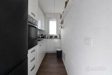 L'appartamento accoglie con un ingresso che si apre su un luminoso soggiorno. Questo spazio è perfetto per rilassarsi e intrattenere gli ospiti. L'angolo cottura, leggermente separato e non a vista, consente di cucinare comodamente senza interrompere la continuità estetica dell'ambiente.