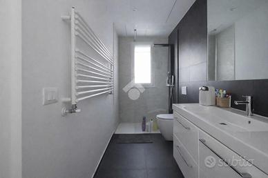 La zona notte comprende una camera matrimoniale e una cameretta. Il bagno finestrato è dotato di un box doccia moderno, garantendo praticità e stile.